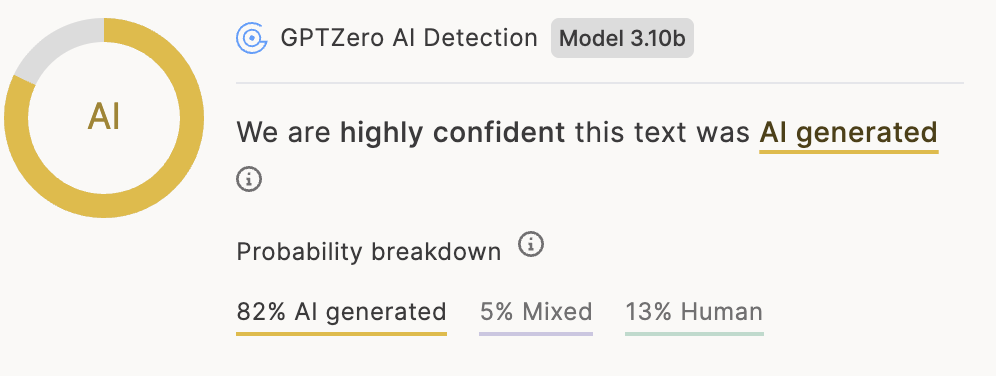 Some tools also factor in extra signals like typing patterns or paste detection, though not all of them do. To be clear: none of these tools are actually detecting AI. They’re making a statistical guess based on how closely your text matches patterns they’ve seen before. Above all of that, what’s even more concerning is how easily these probability scores are treated as hard evidence.